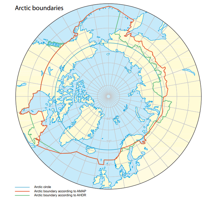 Arktisk Råd, som består av stater som består av områder i Arktis har definert det arktiske området ut i fra en kombinasjon av breddegrad, klima, politiske og demografiske forhold. Definisjonen er utarbeidet av Arktisk Råds Arctic Monitoring and Assessment Programme (AMAP ) – det arktiske miljøovervåkingsprogrammet.