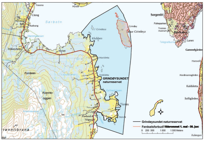 Midt i Tromsø kommune ligger Grindøysundet naturreservat. Det består av Grindøya, sundet mellom Grindøya og Kvaløya og kystlinja på Kvaløya langs dette sundet.Også små deler av Tisnes på Kvaløya inngår i naturreservatet som har vært fredet siden 1995. Området sikrer et stort grunnvannområde i sjø med tilhørende fast grunn på Grindøya som et reservat for fugl. Området har også en høy botanisk verdi.