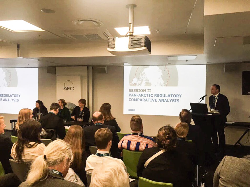 Rambøll og jeg hadde en god times spesial-sesjon på The Edge tirsdag. Deltakere fra både Business Session og Policy Session kunne være til stede. Sesjonen var et samarbeid med Arktisk Økonomisk Råd. Det var helt fullt på møterommet, vi telte rundt 60 deltakere, noen av dem med ståplass. Rambøll presenterte prosjektet Navigating Arctic Regulations sammen med to av våre prosjektpartnere: Kaisa Consulting, Norge og Arctic Slope Regional Corporation, Alaska. Prosjektets idé er å presentere de åtte arktiske nasjoners myndigheters regler og praksis for industriutvikling i Arktis på en felles plattform. Arktis er en region for internasjonal industriutvikling og denne utviklingen vil bli mest reell og mulig hvis de ulike nasjonenes regulatoriske praksiser gjøres enkelt tilgjengelig.